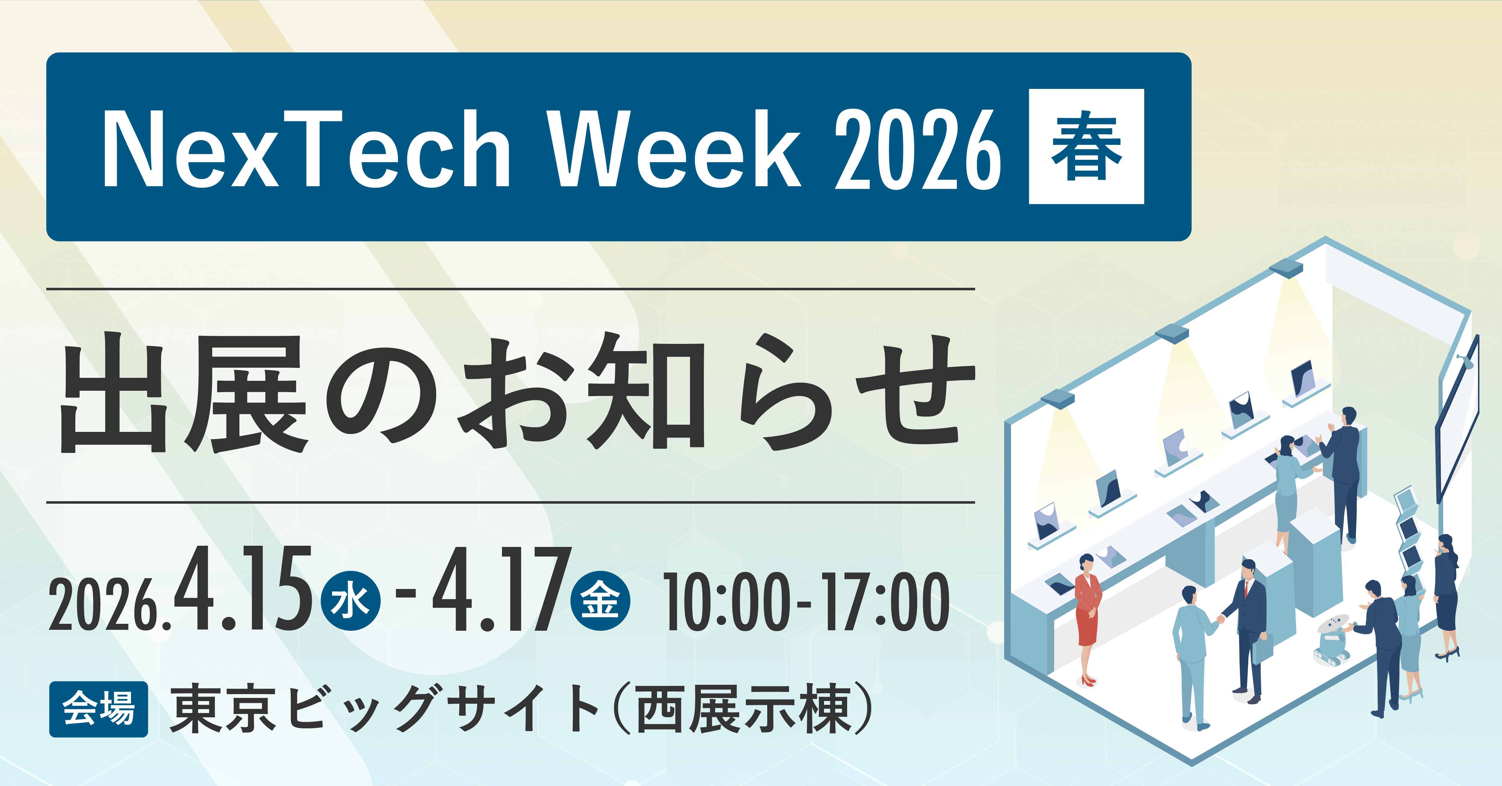 NexTech Week 2026【春】は4/15(水)〜4/17(金)にて東京ビッグサイト(西展示棟)で開催されます。